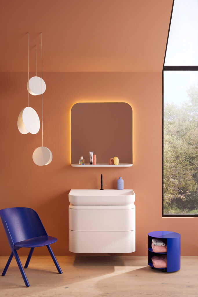Entstanden ist eine Lack-Kollektion mit Rundfronten von höchster handwerklicher Qualität. Die Farbpalette entspricht dabei ganz dem Gefühl des Studios Besau-Marguerre für zeitgenössisches Interior Design und ist komplett individualisierbar. Zudem bietet sich die komfortabel gestaltete Gästebad-Ecklösung auch als architektonisch reizvolle Option für Kleinbäder im Tiny House-Stil an.